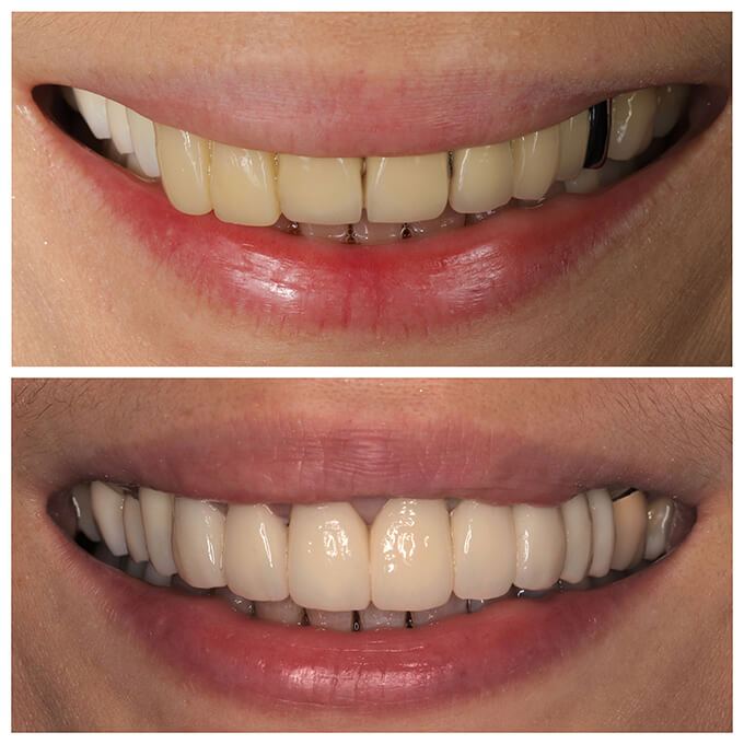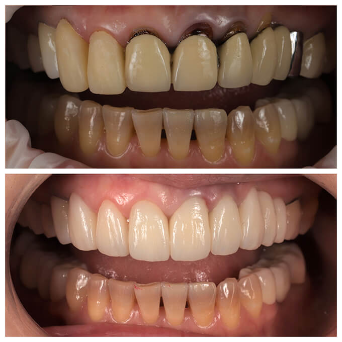 <P ALIGN=LEFT>[呂小姐]</p>主訴:舊假牙齒色過黃,牙齦萎縮且變黑</NOBR>
